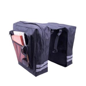 Bicycle bag attached to the trunk. Two capacious pockets of 12 liters each will allow you to transport everything that is necessary during a bicycle trip. Additionally, on each side there are two smaller pockets for small items. The back of the pannier is trimmed with reflective material. The bag is resistant to splashes and light rain. Fits most luggage racks available on the market