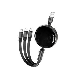 Cavo di ricarica Hoco X78 3 in 1 con connettori USB -A – Lightning / Micro USB / USB -C. Ha un cavo retrattile.