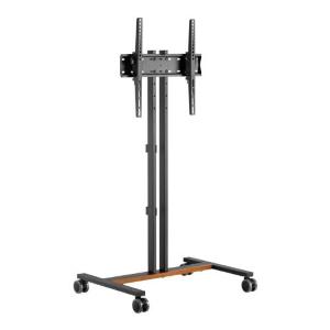 Le ruote di questo supporto TV sono grandi e flessibili e non graffiano il pavimento durante gli spostamenti. La staffa è in grado di accogliere schermi da 34" a 55" con inclinazione da -10° a +10° per evitare fastidiosi riflessi.
